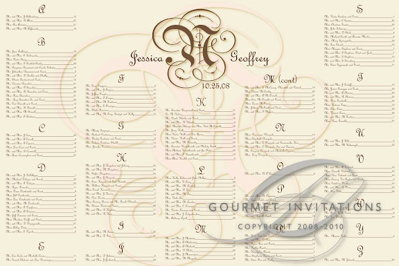 Jessica sent me the inspiration for her seating chart - a simple N that would be on her cocktail napkins and other items at her reception. She also sent me her invitation and I had the font and was reminded of this ornamental "N" that matched the font in style. Her pink and champagne colors with the script font throughout are beautiful.