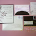The RSVP envelope is my favorite piece. I designed the brown envelopes to have a wrap around address wrap with the lily on the seam. And you may remember Jennifer's RSVP stamps. These are the stamps that won the Zazzle TBA Award!