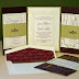 She chose gatefolds for her invitations and they were designed in plum and celery. The invitation itself is framed in a scrolly design.
