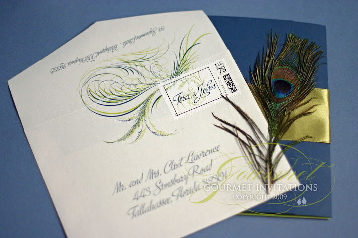 Tera + John: Peacock Feather Invitations